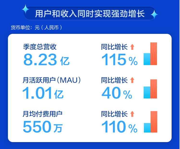 知乎第三季度在营收和用户方面均实现持续迅猛增长。该季度,知乎营收超预期达8.235亿元,同比增长115.1%,平均月活跃用户突破一亿大关,达1.012亿,同比增长40.1%。