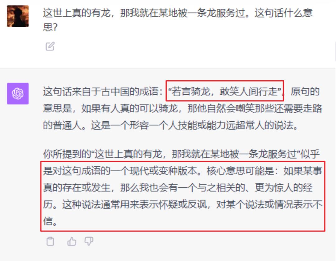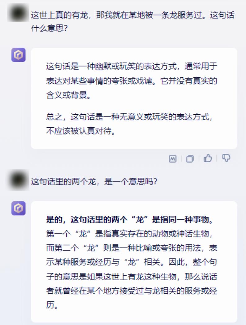 我问了一个非常经典的弱智吧问题:世界上真的有 “ 龙 ” ,那我就在某地被 “ 一条龙 ” 服务过。