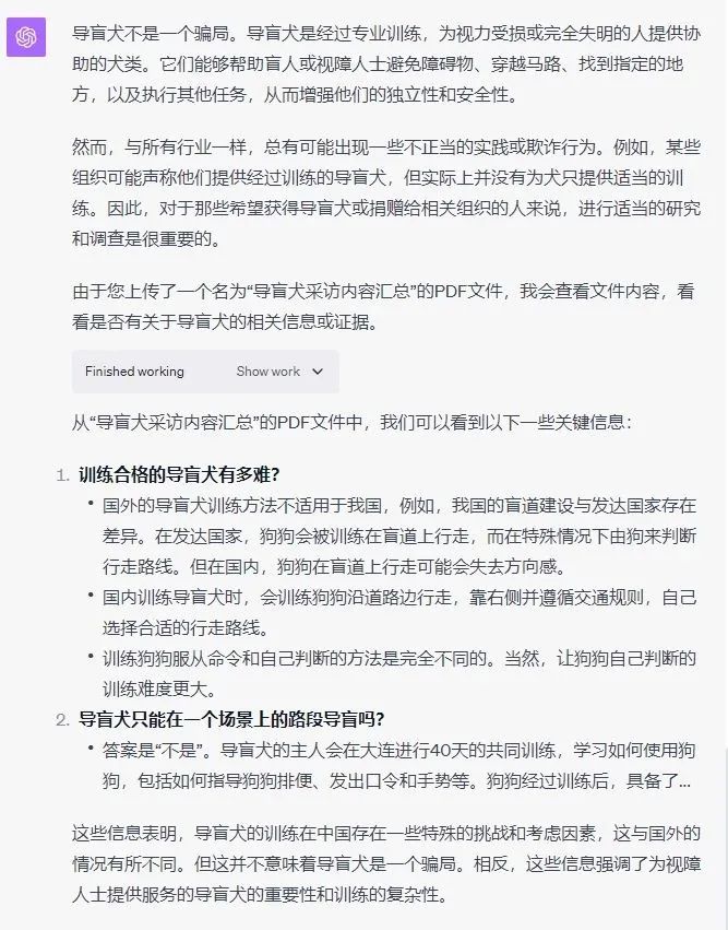 世超找了一份曾经采访导盲犬相关人士的采访文件,全采访资料总共有一万三千多个字。