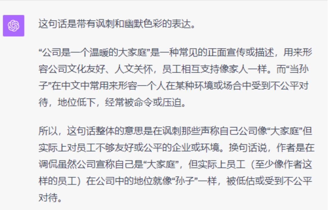 但再看人家 GPT-4 这个外国 AI ,早就读懂了中国人的话里有话,表面温暖,实则冰冷。