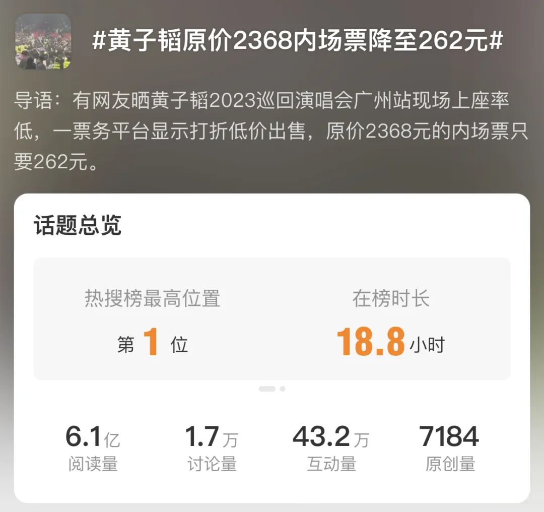与电影票价一样,演唱会票价的制定是市场行为,在缺少宏观调控时,市场监管就变得格外重要。目前,演唱会的票价制定大多与艺人的热度、受众的消费能力等有关,11月20日,黄子韬的演唱会内场定价2368元,最终售票成果不佳,只得“骨折”销售,降至262元。