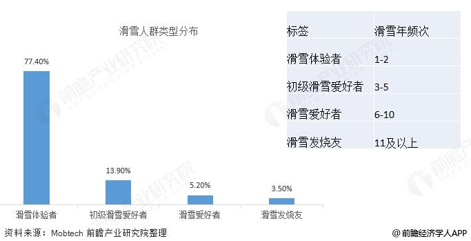 目前我国滑雪人群仍以滑雪体验者为主(占比77.4%),每年滑雪6次以上的滑雪爱好者仅占比8.7%。