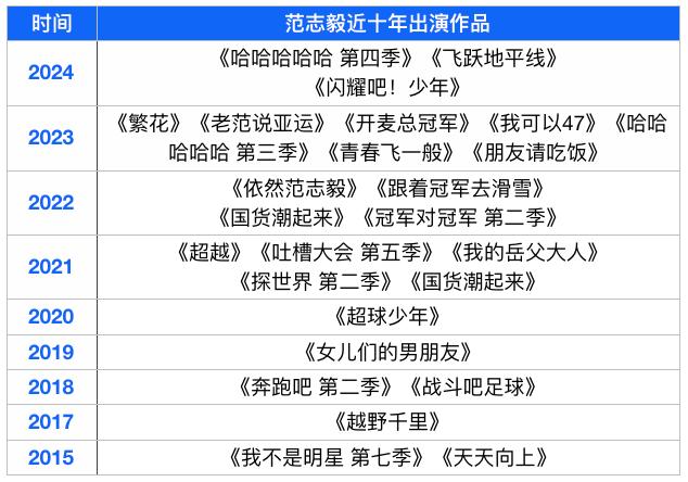 据不完全统计,退役至今,范志毅共主持或参演了超过20档综艺节目,出演了1部电影、1部连续剧,并在多部品牌广告TVC中担纲重要角色,可以说在足坛无出其右。