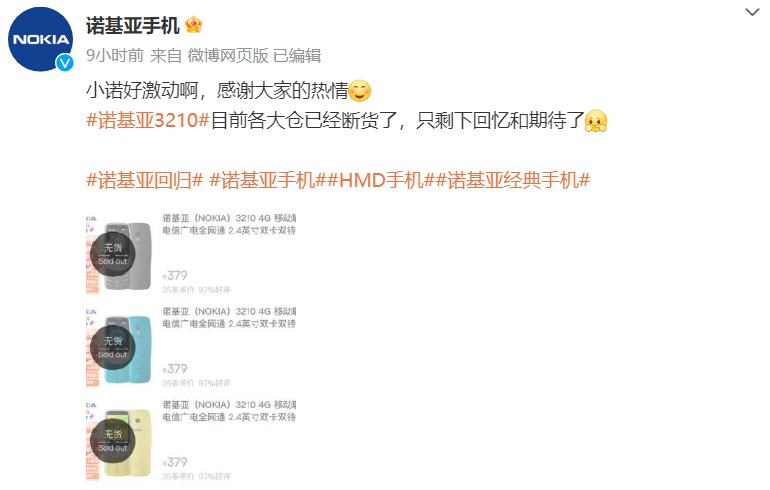 今年 5 月 8 日,诺基亚宣布在国内推出诺基亚 3210 手机复刻版本。