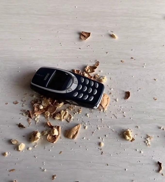 不仅经典的“贪吃蛇”游戏成为一代人的回忆,“诺基亚砸核桃”的名梗也同样来自这款机型。